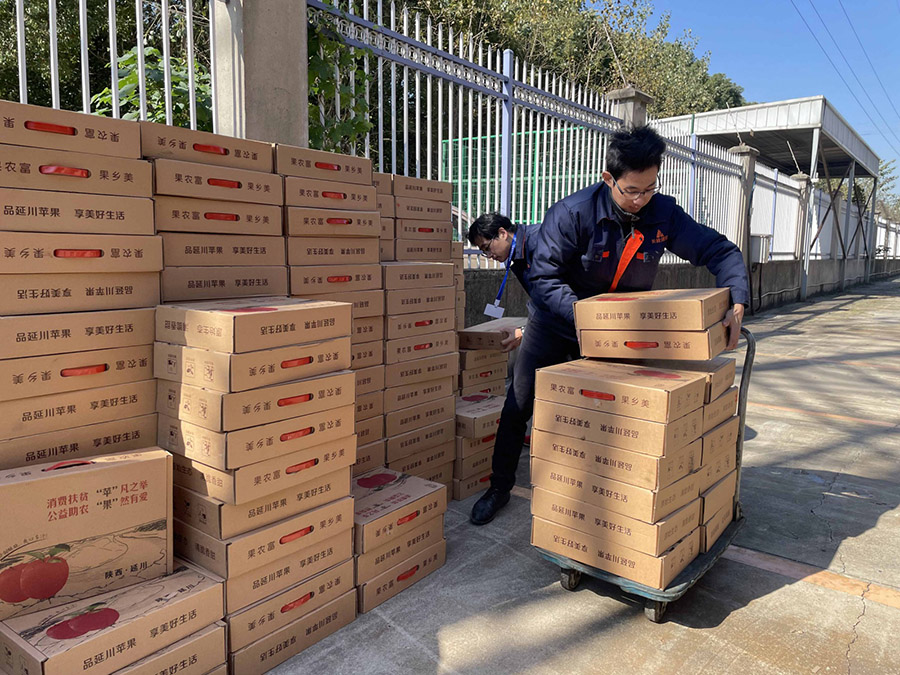 为深入贯彻习近平总书记在十九大报告工作中实施乡村振兴战略的重要思想,进一步加强企业定点帮扶乡村紧密联系。2021年11月9日,完美世界竞技平台官网再一次开展了和陕西延川县杨家圪坮镇孙家塬村的点对点“扶贫助农,振兴乡村”活动。早在去年,公司所在地的云亭商会与该村签订“我在延川有棵(亩)苹果树”的认购活动,确定了为期三年的定点帮扶活动,让当地农民不再为苹果销路而发愁。
